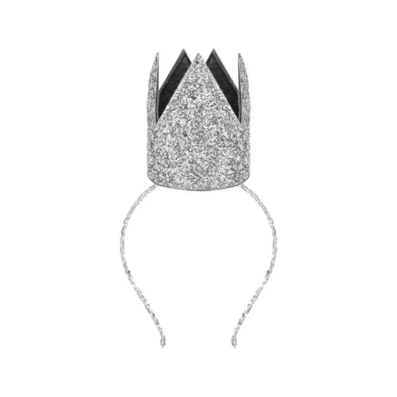 Glitrende 3D-Kronehårbøjle Til Dronning Og Prinsesseleg, Lavet I Det Skønneste Sølv Glitter. Perfekt Til Det Royale Look. Hårbøjlestørrelse, Der Passer Til 3-10-År.