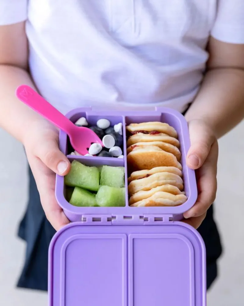Montii Har Lavet Denne Snack Box, Bento Two, Med To Forseglede Rum Og En Lille Skillevæg, Så Det Er Nemt At Opdele Barnets Snacks. Vær Opmærksom På, At Skillevæggen Ikke Er Tæt Ved Flydende Væsker, Men Blot Opdeler Maden. Forseglingen Betyder, At Maden Holder Sig Frisk I Længere Tid. Dvs. Du Kan Skære Frugt Ud, Og Det Vil Stadig Være Friskt, Når Barnet Skal Have Eftermiddagssnacks. Bento Two Har En Børnevenlig Åbning, Så Barnet Nemt Kan Åbne Sin Madpakke.