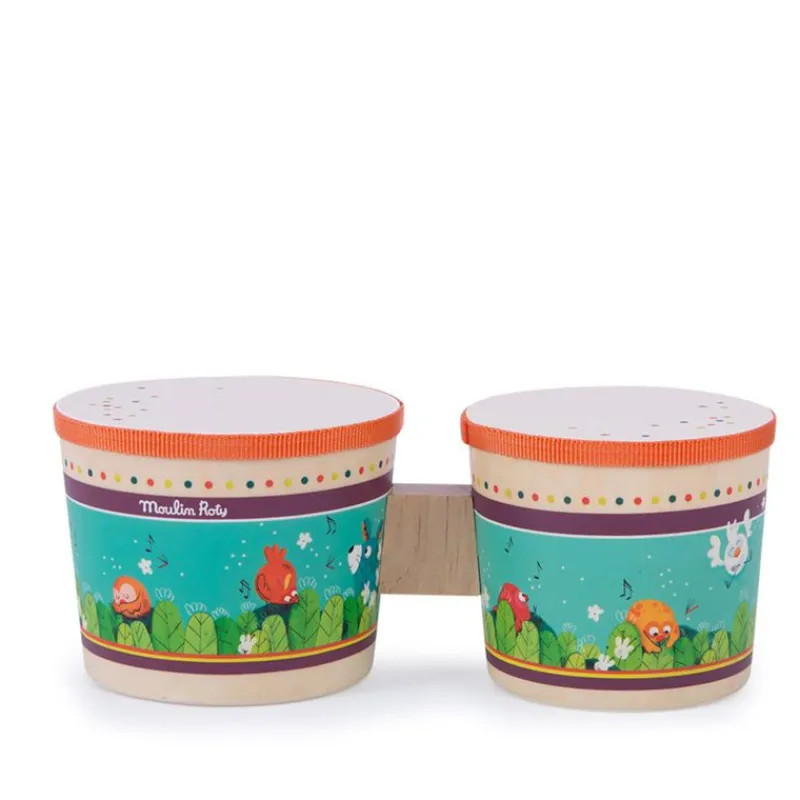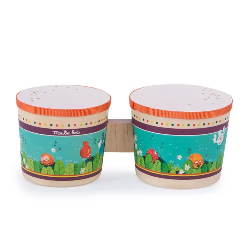 Bongotrommer Med Motiv Fra De Velkendte Jungledyr. Perfekt Gaveidé Til Barnet, Der Elsker Musik.