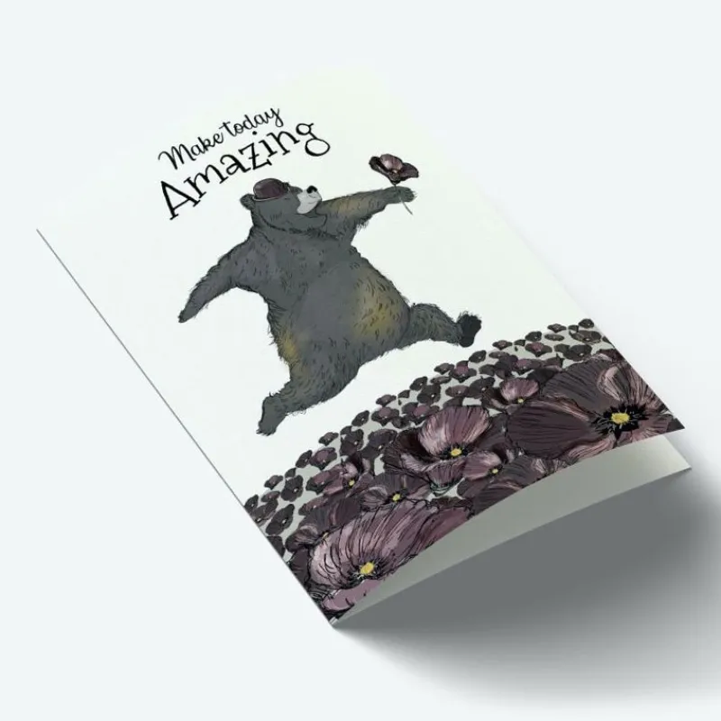 Dette Festlige Og Pæne Kort Pynter Til Enhver Gave, Kurv Eller Blomst. På Kortet Er Der Tegnet Den Skønneste Bjørn, Med Teksten “Make Today Amazing”.