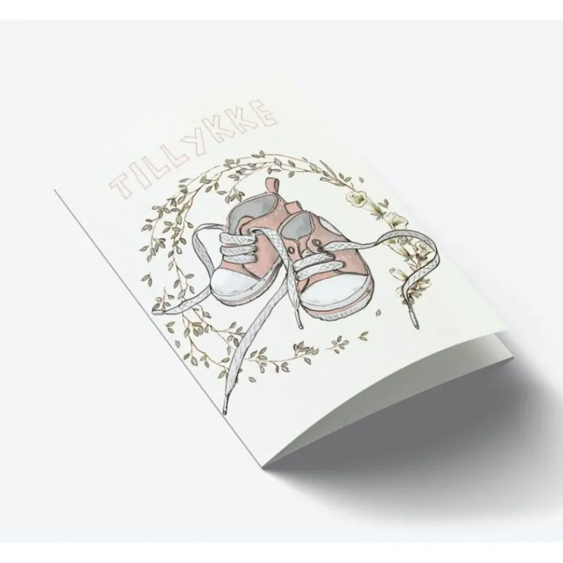Et Sødt Lykønskningskort Med Et Par Små Børne-Converse I Lyserød.