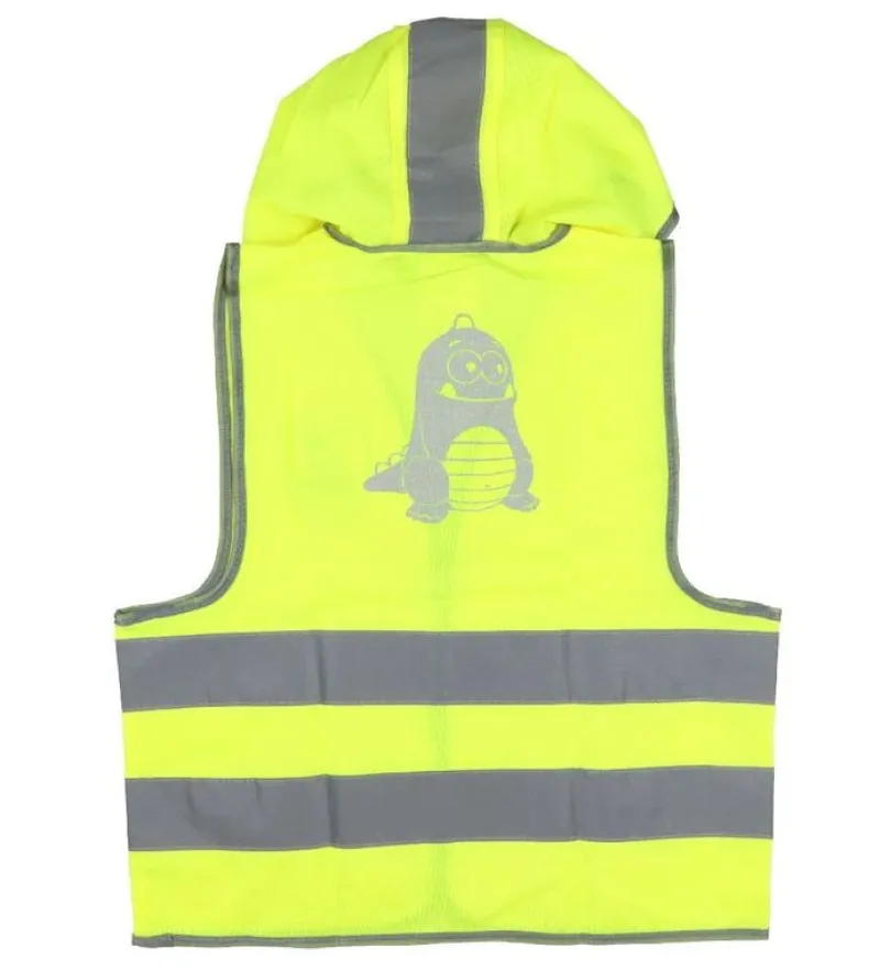 Vesten Øger Sikkerheden I Mørke, Dårligt Vejr Og I Trafikken. Sikkerhedsvesten Er Udstyret Med En Praktisk Hætte Med Brede Refleksstriber. Vesten Er Syet Med Et Ekstra Bredt Snit, Så Der Er God Plads Til Overtøj Under Vesten. Det Gør Det Behagelig For Barnet At Have Vesten På. Der Er Velcrofastgørelse Til Individuel Størrelses Justering. Vesten Er Pyntet Med Et Sødt Børnemotiv Både Foran Og Bagpå.