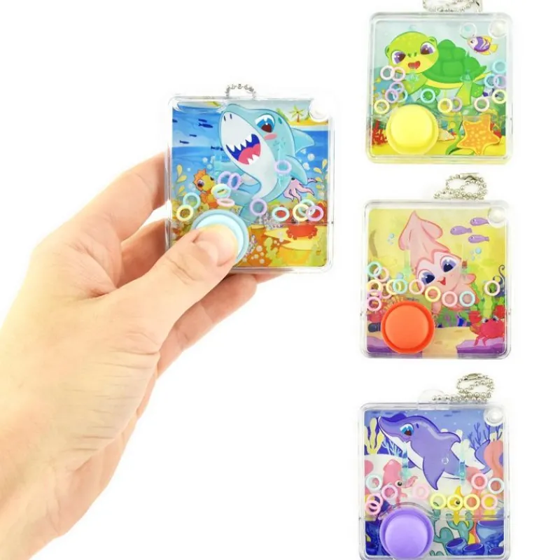 Fantastiske Vandspil Med Havets Dyr. Legen Gælder Om At Få Alle Ringene På Pindene Ved At Trykke På Spillets Knapper, Og Dermed Pustes Vand Op. Vandspillet Er Perfekt Til At Have Med På Farten, Fordi Den Er Lille Og Kan Garantere Mange Timers Leg, Og Hvis Vandet Ryger Ud Af Spillet, Kan Man Nemt Fylde Den Op Igen. Dette Vandspil Kan Hænges På Nøgleringen, Tasken Og Meget Andet, Så Spillet Ikke Forsvinder.