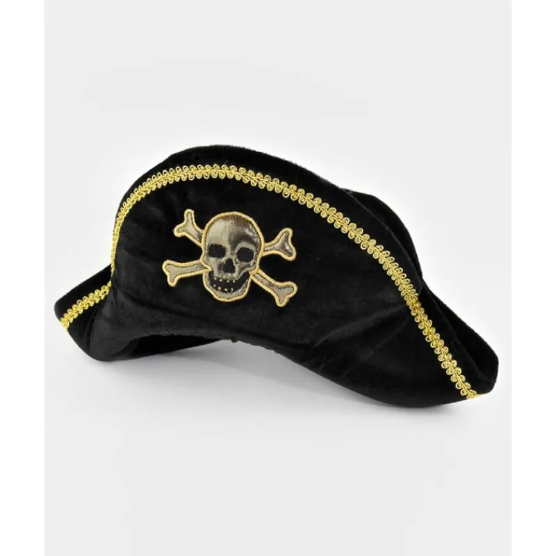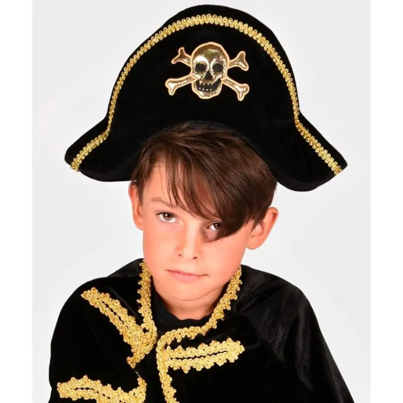 Sort Fløjlspirathat Med Gyldne Detaljer