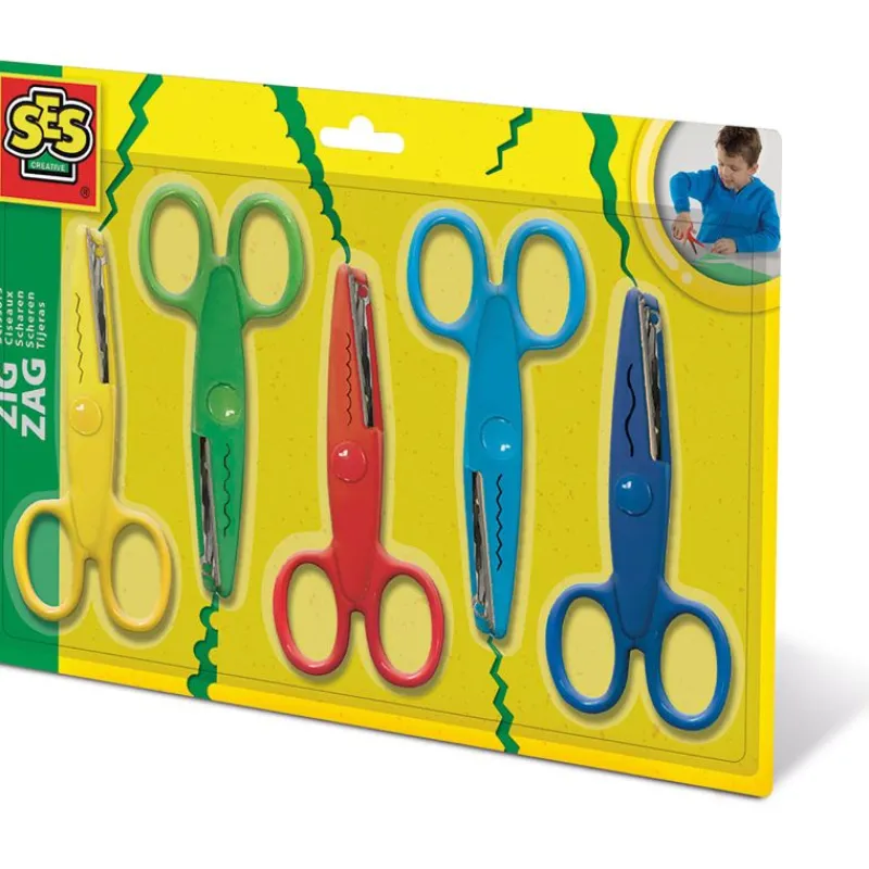 5 Børnesakse Som Klipper Forskellige Zigzag Mønstrer. Rustfri.