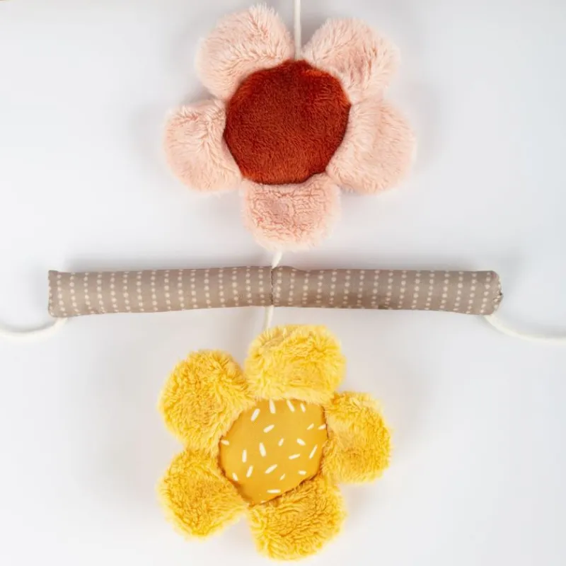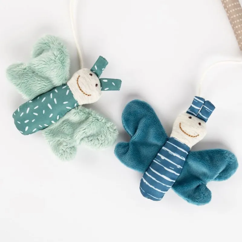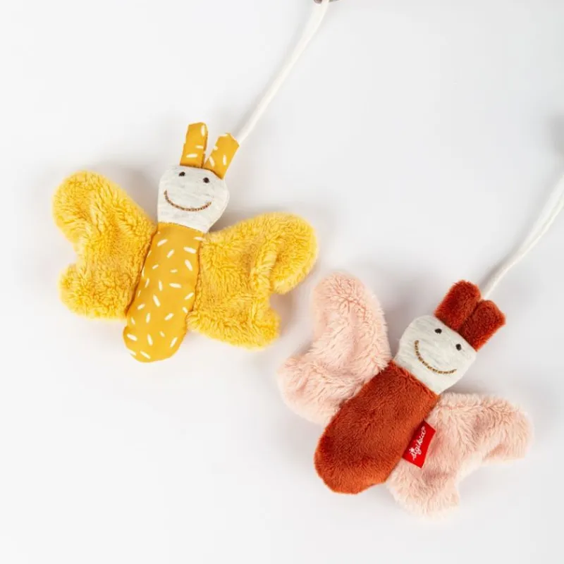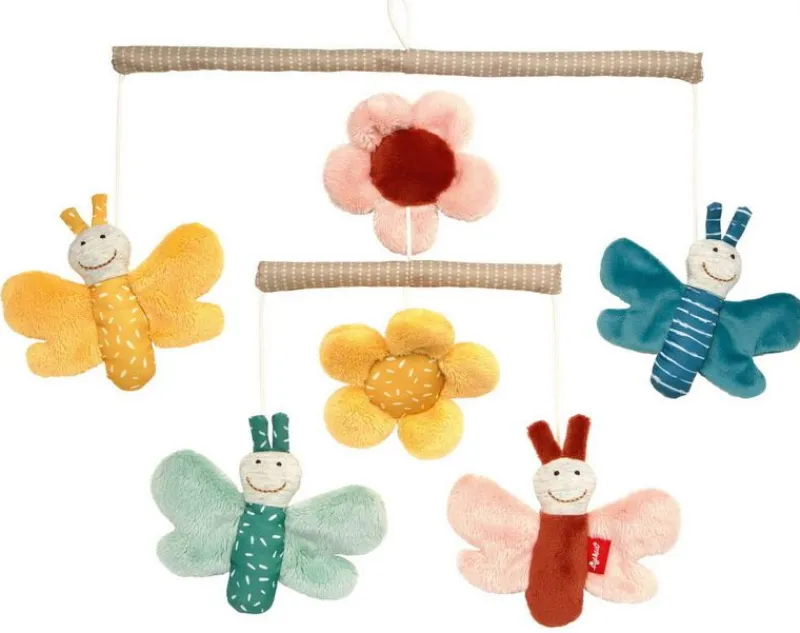 Farverige Plys Sommerfugle Cirkler Yndefuldt Omkring En Blomst. Brug Den Over Tremmesengen, Puslepladsen Eller Hvor Du Gerne Vil Aktivere Din Baby. Der Er En Løkke Du Kan Hænge Den Op I.
