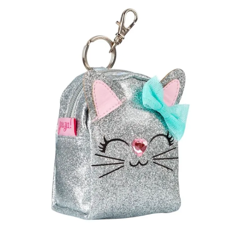 Glitrende Pung Med Sød Kat. Let At Fastgøre Med Den Metalliske Krog, Som Nøgleringholder. Er Lavet I Pu Materiale.