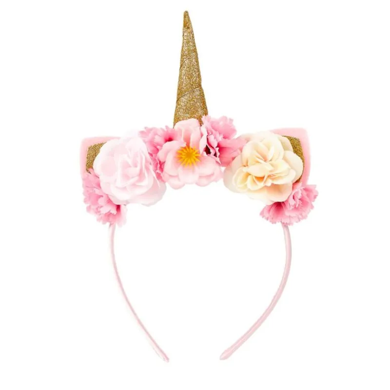 Enhjørningehornet På Denne Hårbøjle Er Omringet Af Skønne Blomster Og Et Par Søde Ører.