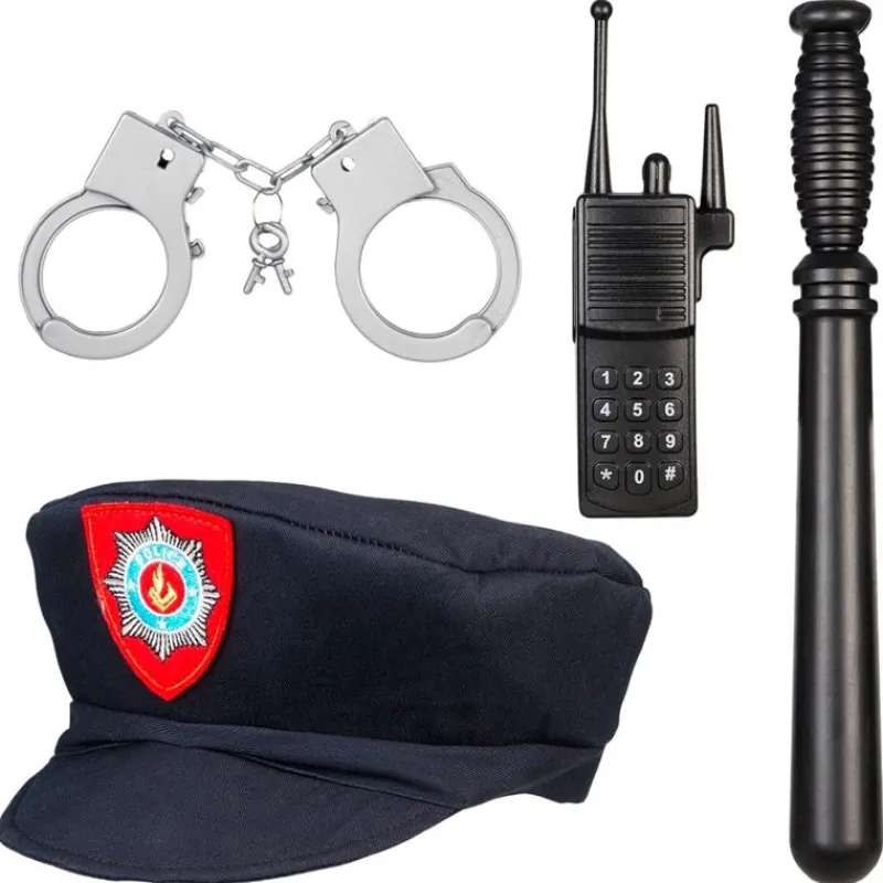 Politimandssættet Indeholder: Jakke, Hat, Håndjern, Walkie Talkie Og Politistav.