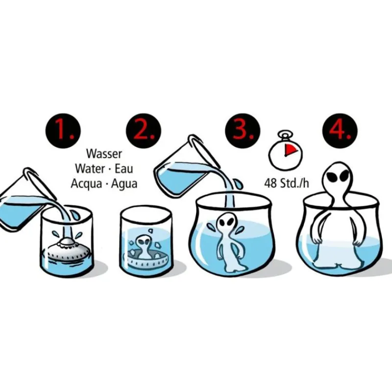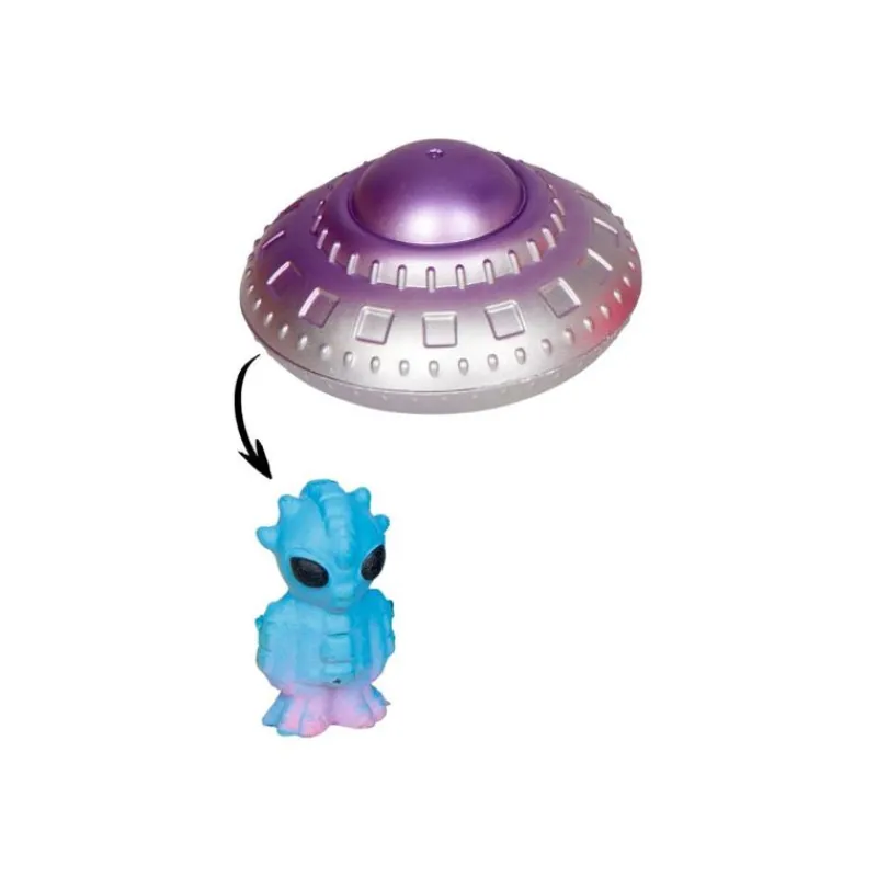 Hvis Du Placerer Ufo’En I Vandet, Opløses Den Nederste Del Af Ufo’En, Og En Af De 6 Alien-Karakterer Dukker Op. I En Større Beholder Med Ferskvand Vil Figuren Fortsætte Med At Vokse I Løbet Af De Næste 48 Timer Og Nå En Højde På Op Til 12 Cm! Fås I 3 Ufo- Og 6 Alien-Designs.