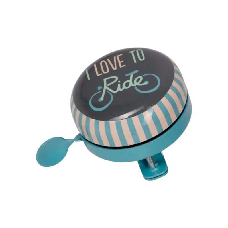 Lille Cykelklokke Med Ordene “I Love To Ride” Til Glade Cykelture. Lavet Af Metal, Med En Nostalgisk Lyd.
