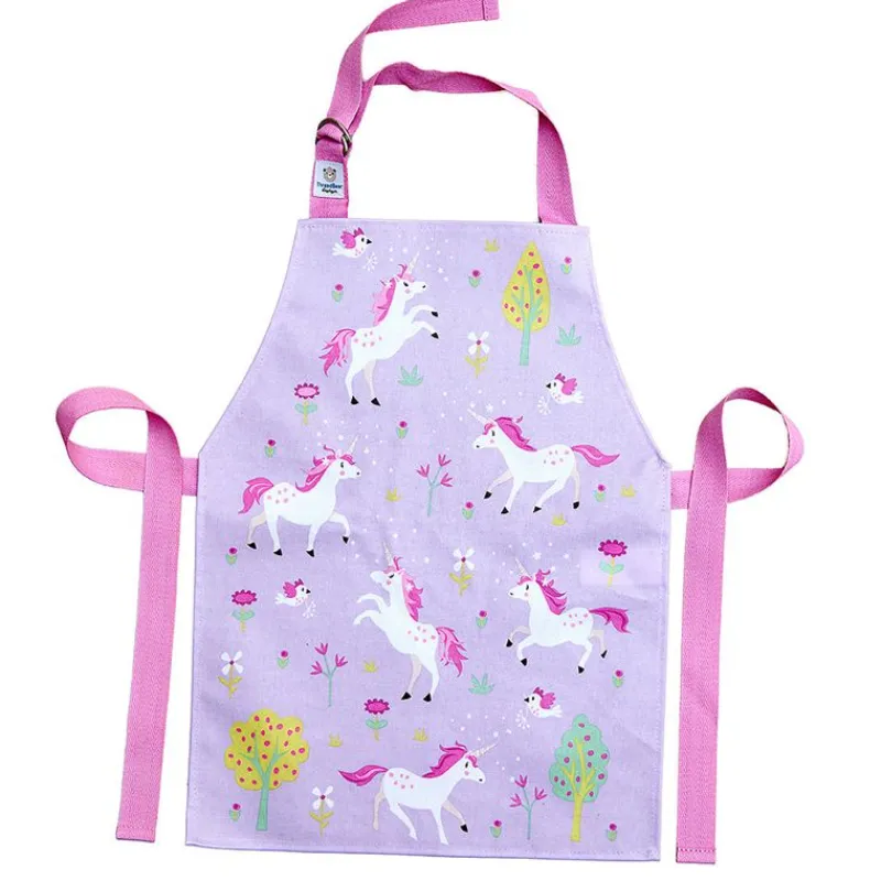 Dette Lilla Enhjørning-Forklæde Beskytter Tøjet Ved Leg Med Farver Og Lignende. Kan Justeres I Nakken For En Perfekt Pasform.