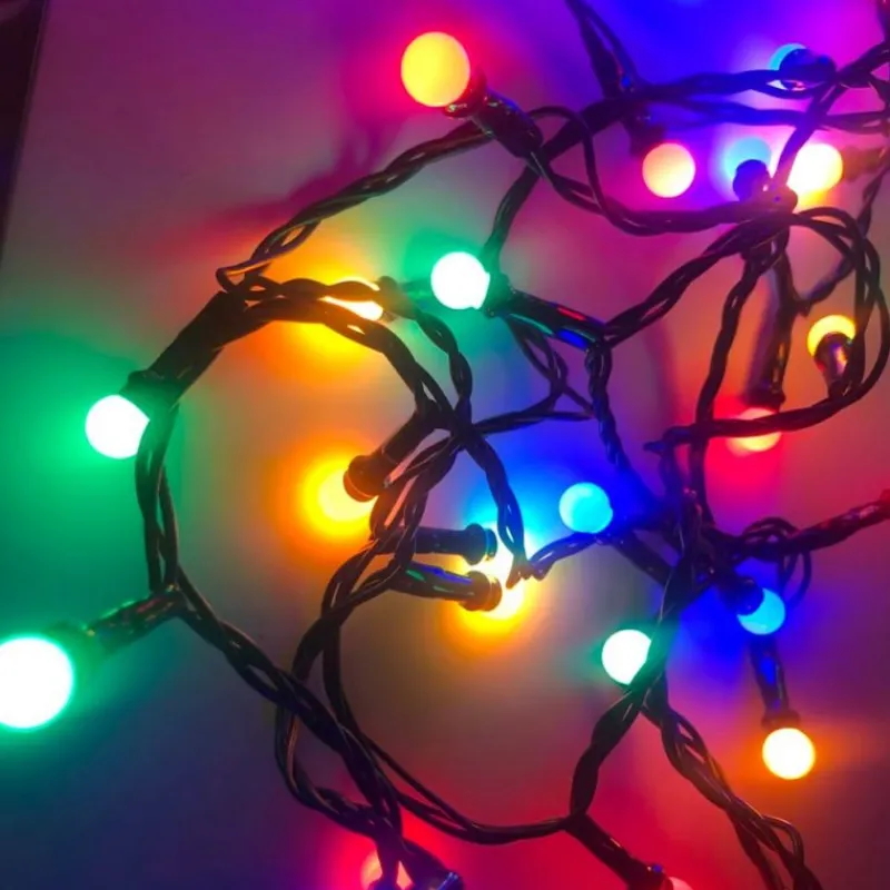 Denne Multifarvede Lyskæde Med 100 Små Snebær Er Perfekt Til Både Indendørs Og Udendørs Brug. Den Har En Transformer, Så Man Kan Sætte Flere Lyskæder Sammen. Der Er 7,5 Cm I Mellem Hver Pære.