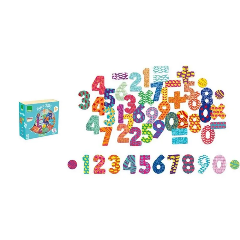 Farverige Træmagneter Med Tal Og Symboler. Leveres I Flot Trææske Gennemsigtigt Plastiklåg. Kan Bruges Både Til Leg Og Læring.