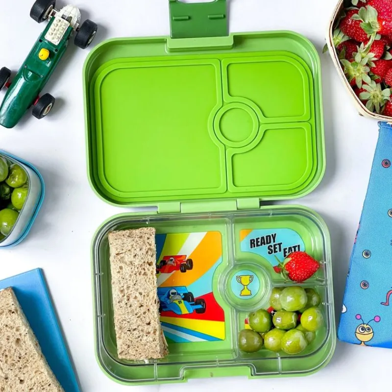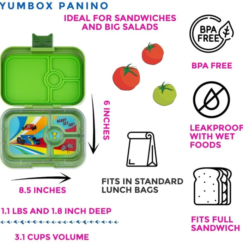 Yumbox Classic Madkasse Med 4 Rum Er Den Vi Kalder Rugbrødsudgaven. Her Er Der God Plads Til Klapsammen-Mader Og Lækre Snacks. Den Har 1 Stort Rum Og 3 Mindre, Som Hver Er Forsejlet Af Silikonen Der Sidder I Låget. Forsejlingen Gør, At Man Nemt Kan Pakke Tyktflydende Væsker Uden Det Flyder Ud I Andre Rum Samtidig Med At Mad Og Frugt Holdes Frisk I Flere Timer.